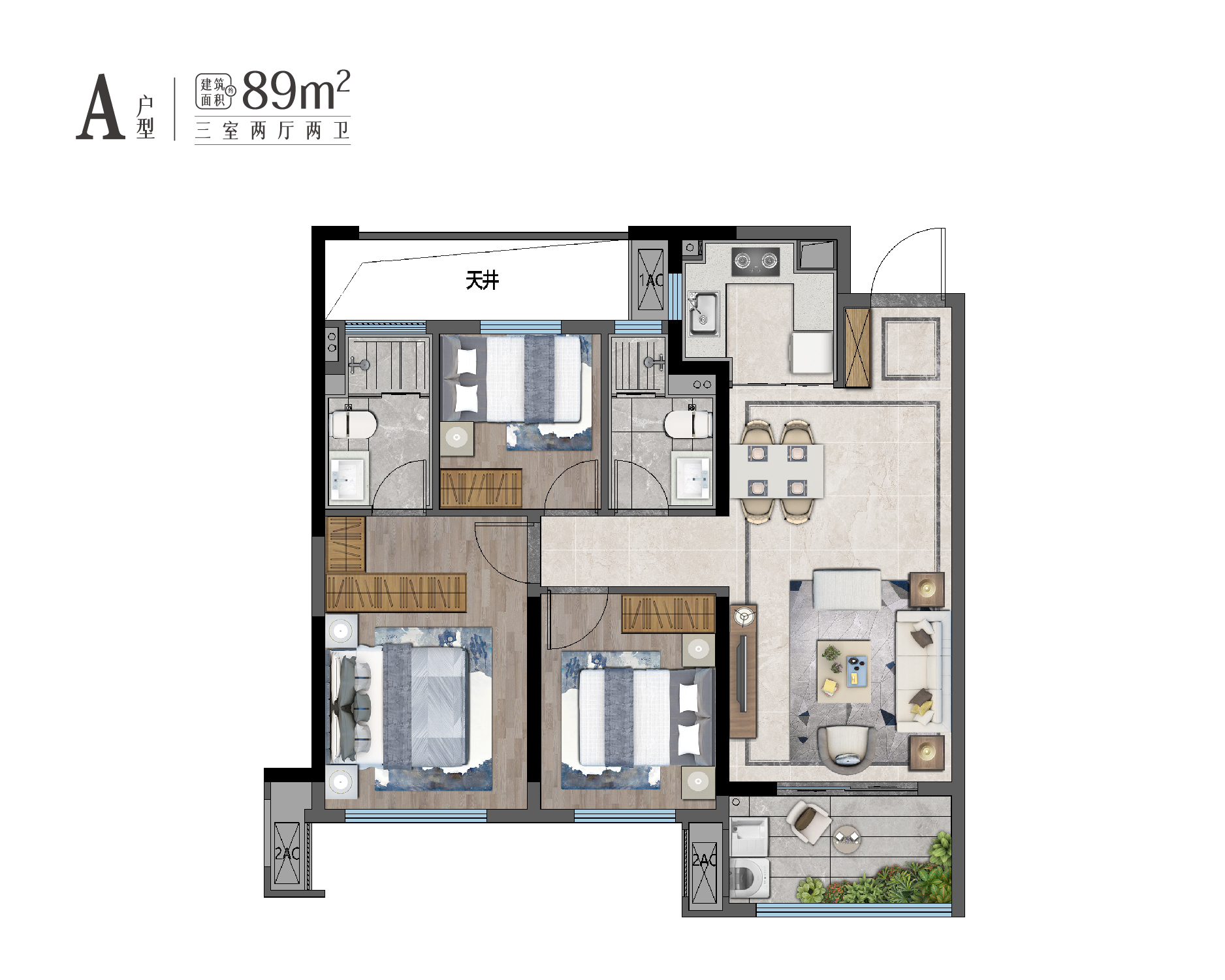 户型设计巧妙地兼顾了实用与美观。项目提供了建面约89㎡、约109㎡、约133㎡、约140㎡、约142㎡的宽三房/阔四房,无论是功能布局还是空间利用都堪称完美。户型方正,南向大面宽设计,保证了充足的采光和通风。同时,户型设计也彰显了居者的尊崇与雍容,让居民在这里尽享舒适宜居的生活体验。约89㎡的稀贵正三房设计更是独具匠心。这个户型以小户型大面宽的特点,成为了进阶人生的理想选择。它不仅提供了宽敞的居住空间,还保证了良好的采光和通风,让居住者在有限的空间内享受到最大的舒适度。