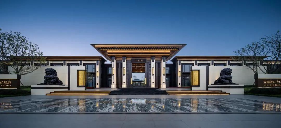 入口处,一个约6500平方米的尊享庭院以三阶登门的设计迎接每一位访客。铜狮镇宅和御制府门不仅展示了传统的礼仪和尊贵,也体现了对历史文化的尊重和传承。沿着寻幽步道漫步,山水迎宾的景象使人仿佛置身于人间仙境。在王府景亭中,可以俯瞰整个园林的美景,感受那份远离尘嚣的宁静与尊贵。