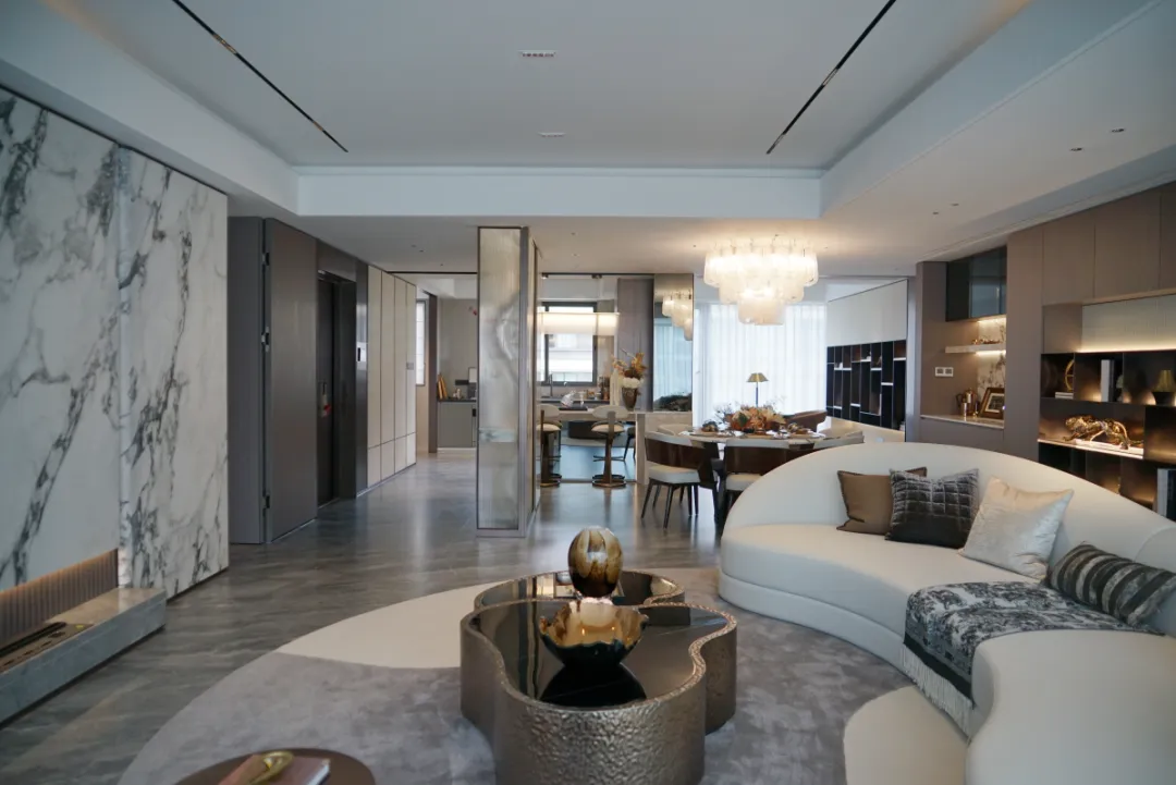 一梯一户的设计,保证了住户的私密性和尊贵感。中央厅堂宽敞明亮,可以设立藏酒品鉴区,打造无界的公区,满足家人的情感交流和藏家的社交会客需求。这种融合式、多元化的家庭交互中心,无论是宴客还是聚会,都能带来极致的排面和体验。