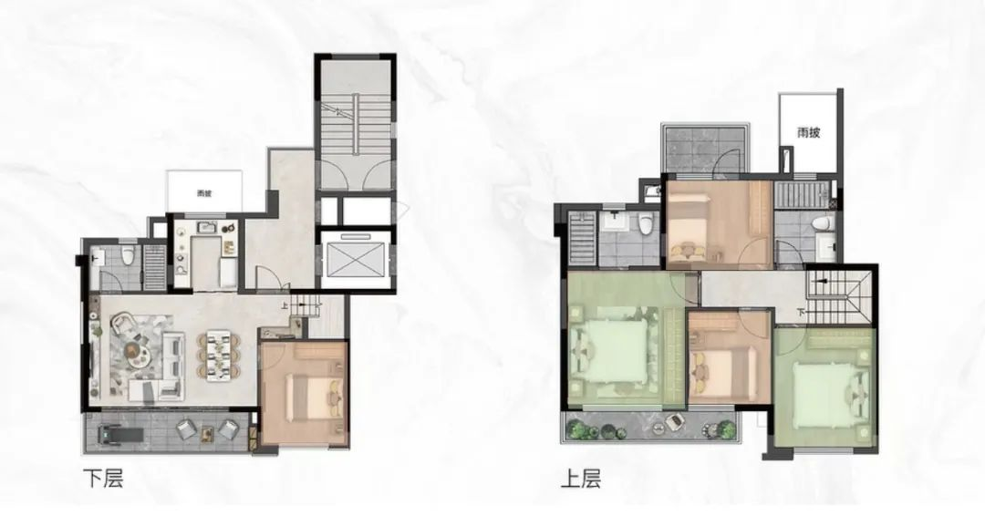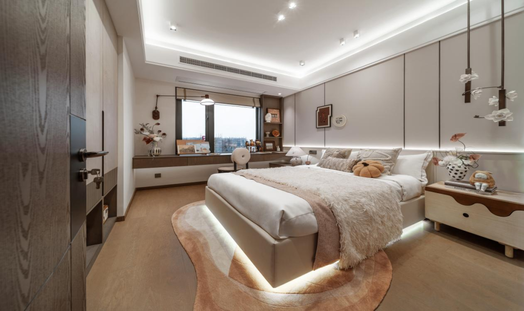 高质量的家庭生活离不开合理的社交空间设计。龙湖景粼天著精装大复式通过上下双层空间设计,满足了多元化居住需求,实现了动静分区,互不打扰,为家庭升温配置更多的生活场景。首层父母房设计,避免了老人上下楼梯的不便,同时保证了隐私性,确保家庭成员的不同生活作息互不干扰。