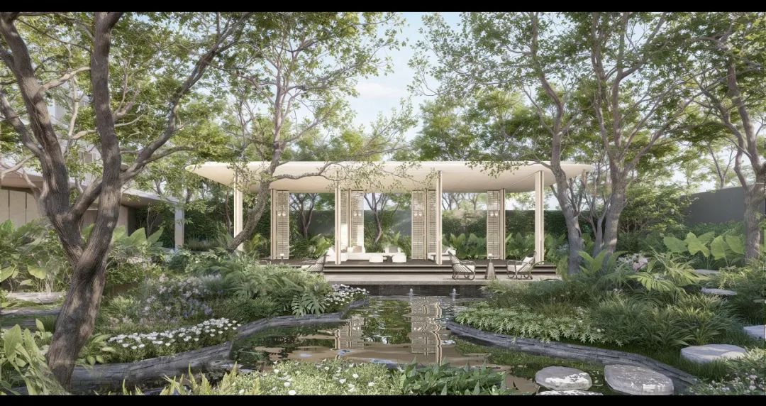 社区内部打造了约6000㎡的南洋艺术园林,规划了微风栈道、清风草坪、雨林秘境等休闲场景。同时,项目还代建约16.41亩的市政公园,进一步丰富了居民的休闲空间。这种“内外双园”的设计,使业主同时享受社区园林的精致与市政公园的开阔。