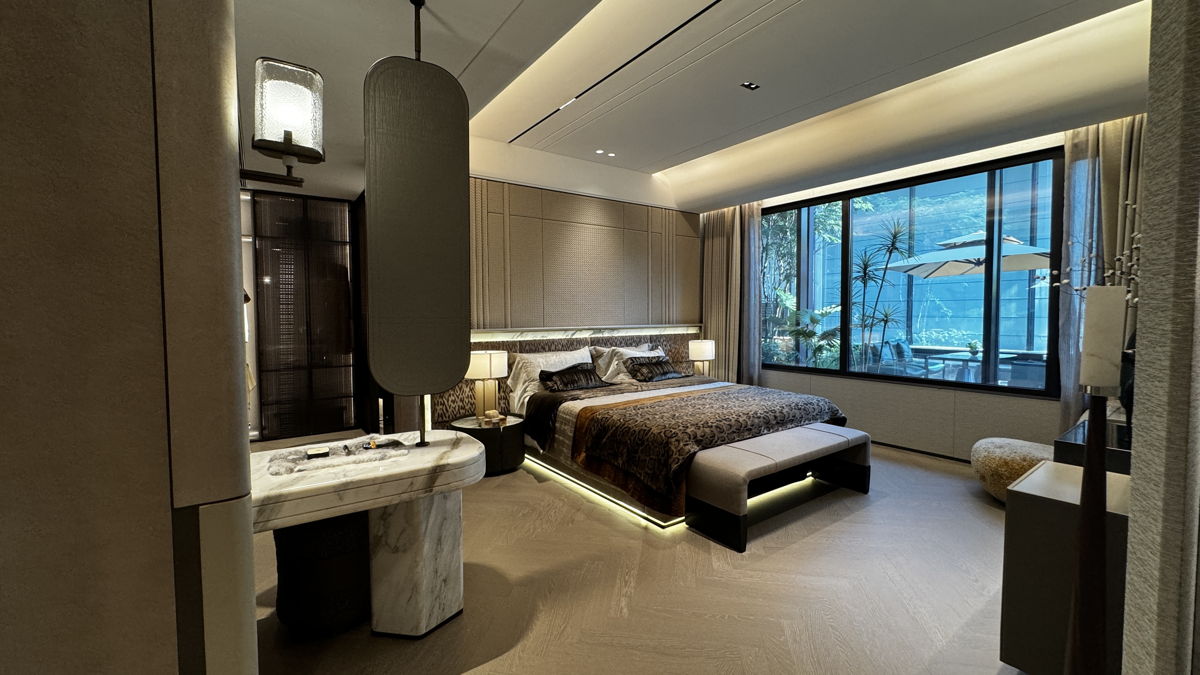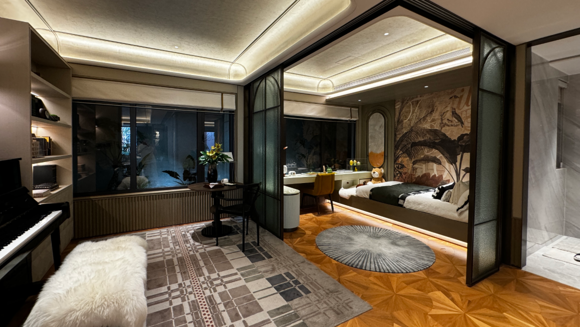 户型均为135㎡以上大平层,主打四房至五房,适合多孩家庭或三代同住。240㎡户型设计阔绰,南北通透,部分单元配备双阳台、宽景飘窗,视野采光俱佳。整体得房率约78%-80%,在主流市场中属中上水平。