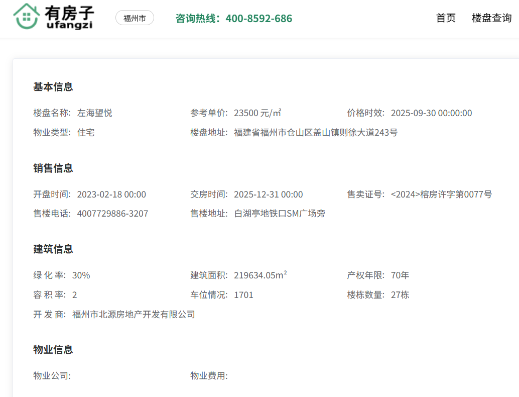 左海望悦的开发商为福州建发,是福州本土国企。国企背景通常在项目交付风险上相对较低,能给购房者带来更多安全感。