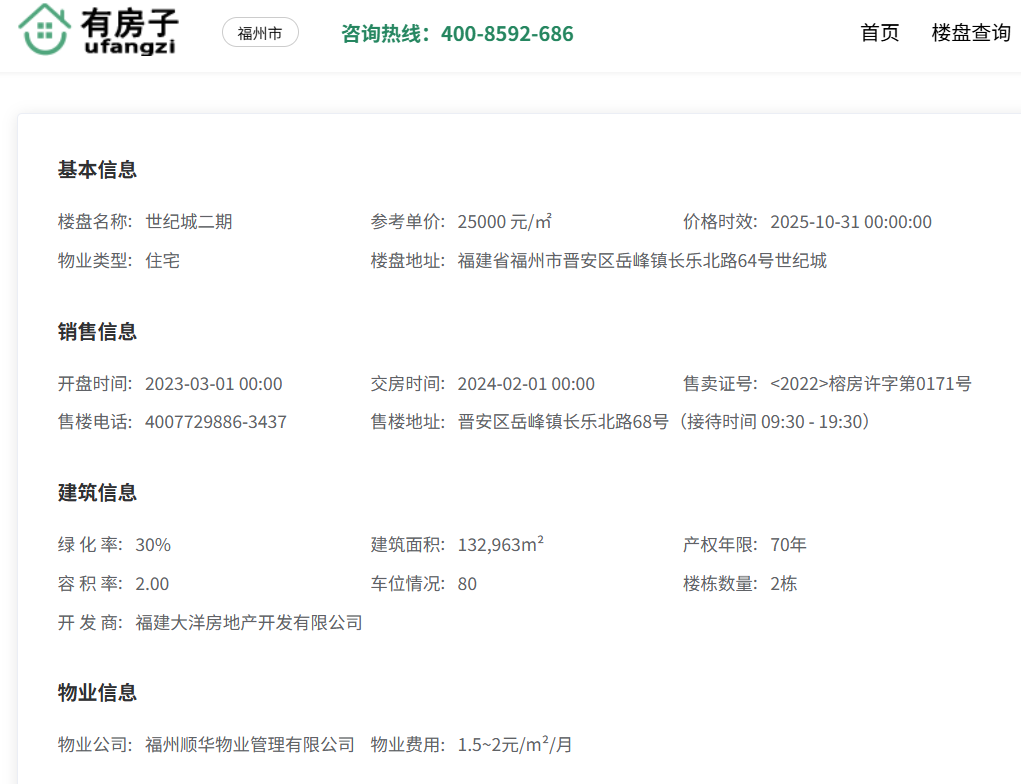 1.  本土深耕经验:世纪城系列的开发商为福州本土房企,对当地市场和人居需求有较深的理解,且一期已交付,具备一定的开发经验。