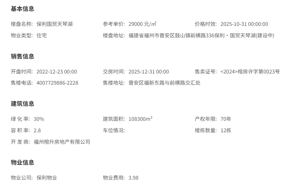 福建省福州市晋安区鼓山镇前横路336保利·国贸天琴湖(建设中)