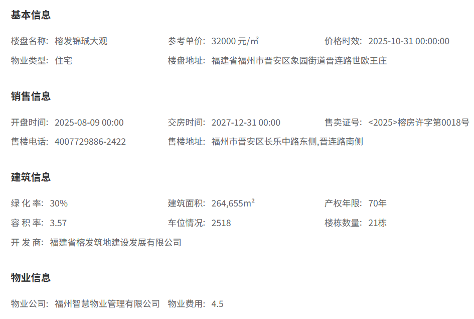 榕发锦珹大观由福州榕发置地有限公司(福州建发旗下国企)开发,这一国企背景为项目增添了重要的信誉背书。