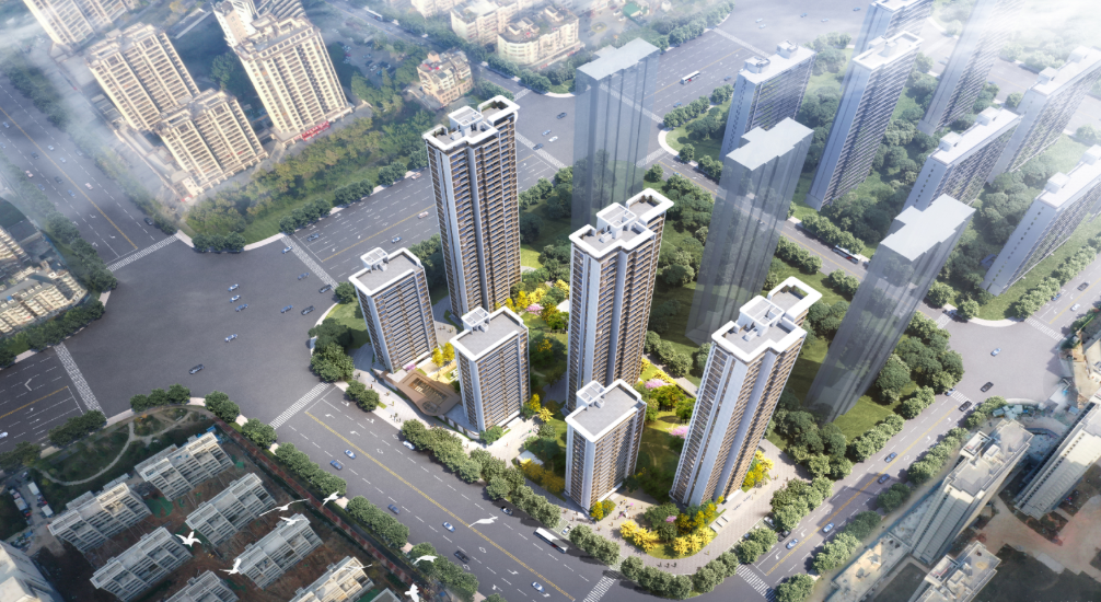 项目采用“全高层、大中心花园”的布置理念,通过建筑的围合与错动,组织出尺度宜人的公共景观空间。
