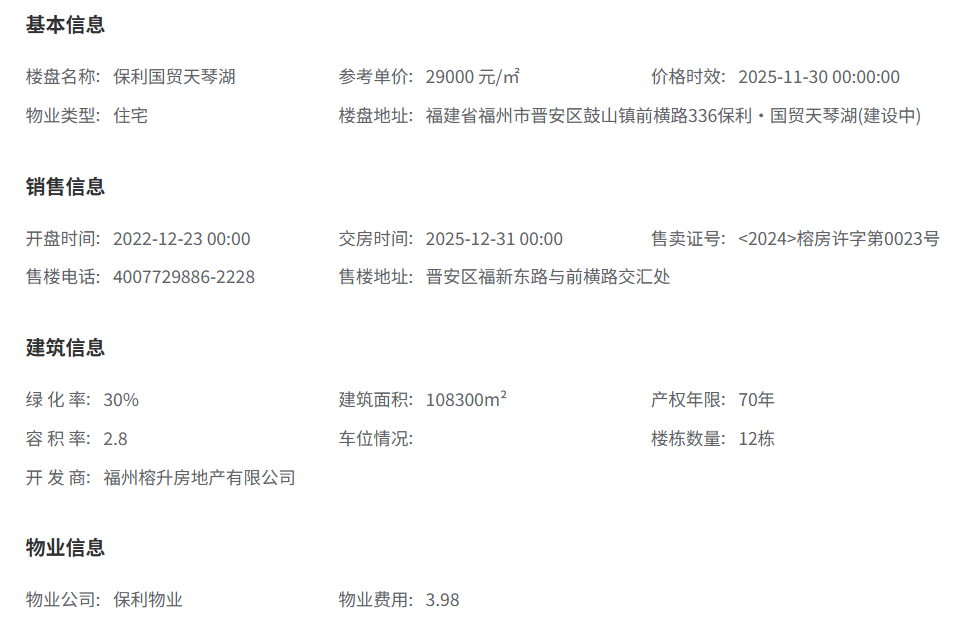 福建省福州市晋安区鼓山镇前横路336保利·国贸天琴湖(建设中)