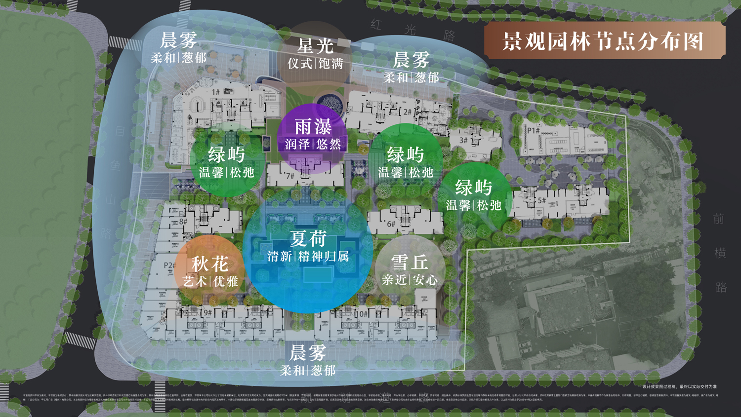 园林设计:社区规划了超过1.2万平方米的花园式景观,以中国二十四节气为线索,打造集中式景观大花园,确保四季皆有景可赏。