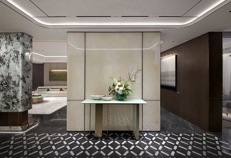 项目采用全T2纯板楼设计,保证了通透性和私密性。主力户型面宽大,强调采光和视野,部分高端户型还采用了端厅、270°环幕视野等设计。