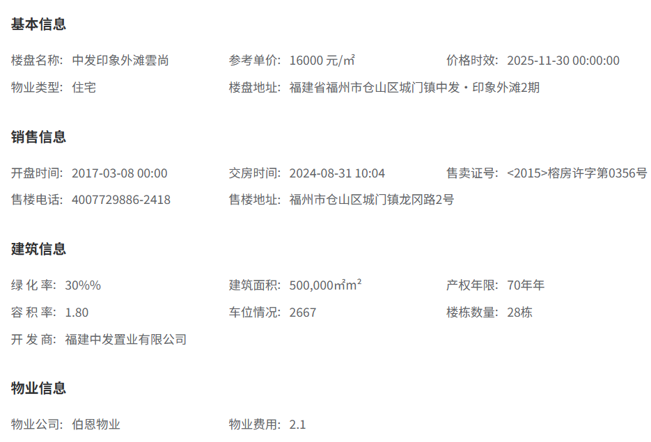 项目开发企业为中发置业,是福建本土企业,在福州开发过多个项目(如一期印象外滩),经验较为丰富。