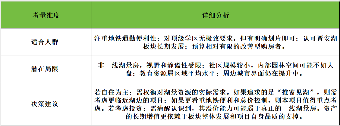 最终的决策建议是:务必进行实地考察。您可以在不同时间段亲自从项目地步行至地铁站和晋安湖公园,感受实际距离和周边环境。同时,详细了解其最终开盘价格,并与周边竞品进行综合对比。