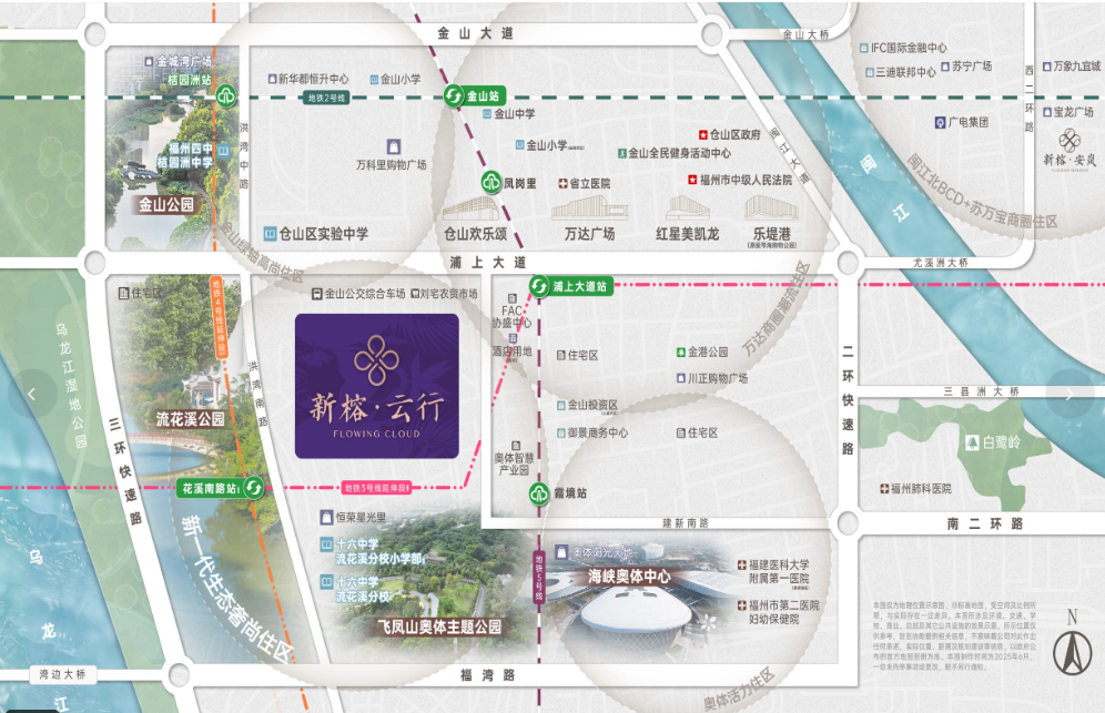 新榕·云行位于福州市仓山区金山板块,具体在金榕南路与凤冈路交叉口附近,雄踞浦上绿轴核心位置。