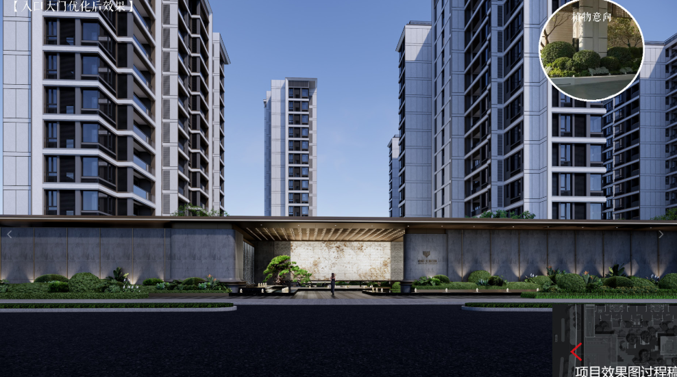 社区入口匠造约60米宽、约6.1米高绮丽门庭,以恢弘尺度、奢雅用材为业主营造尊贵归家的第一步。