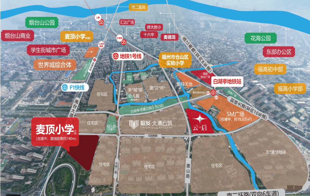 榕发云启位于仓山老仓山板块,具体位置在仓山区盖山路迎宾苑北侧。这一区位优势使得项目周边交通网络发达,生活配套成熟。