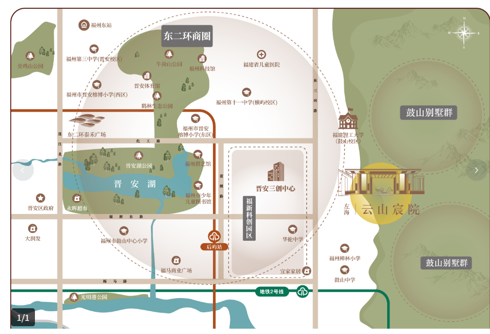 左海云山宸院(备案名)位于福建省福州市晋安区鼓山镇东三环路,地处鼓岭山麓。项目由福州本土国企——左海集团开发,这一国企背景为项目增添了可靠的交付保障。