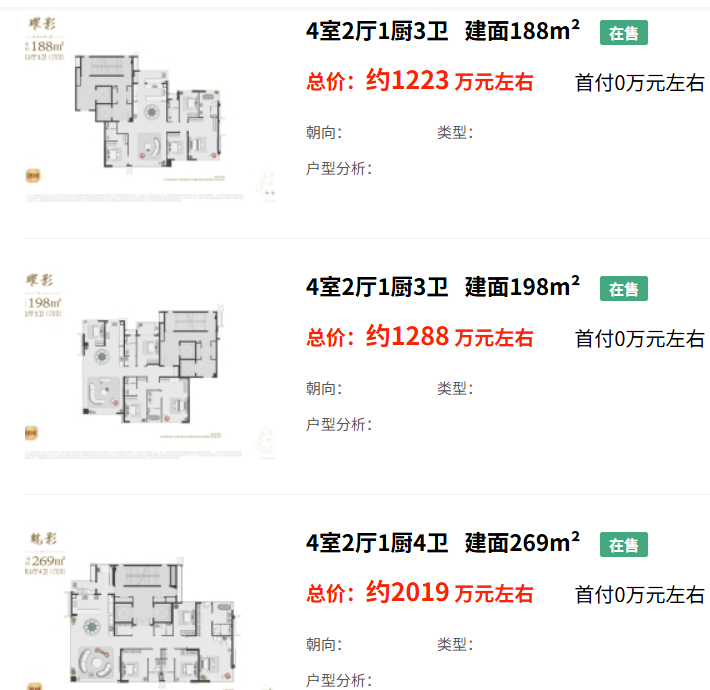 价格门槛:项目2025年最新均价约65000元/㎡,入门级188户型总价也逼近1200万,而333户型总价则超过2000万,客群极度狭窄。