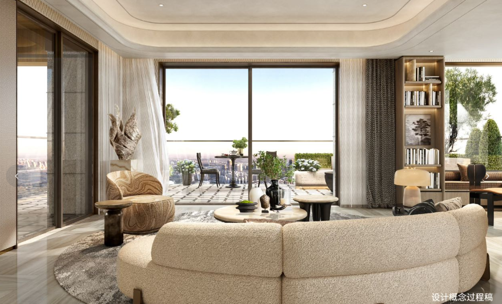 项目最大的亮点在于它是金山板块首个立体生态住宅项目(第四代住宅),通过垂直庭院、巨幕采光等设计,实现“仰观云卷云舒,俯察烟火人间”的东方哲思。