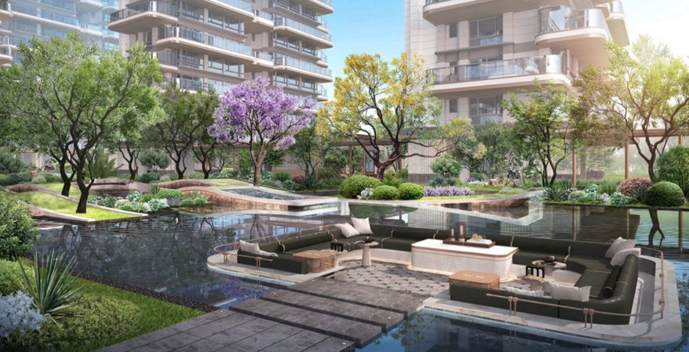 新榕云行以「水天系」首座之姿,于双生水岸间,以立体滨水空中院重绘金山天际线,将自然生态与建筑艺术完美融合。