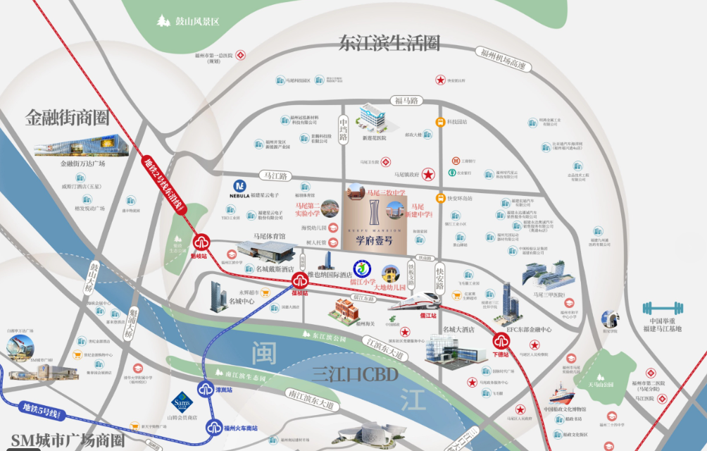 未来地铁加持:根据福州市轨道交通规划及最新公开信息,地铁2号线东延线(建设中) 的马尾中心站(暂命名)距离项目所在地仅约1公里左右。
