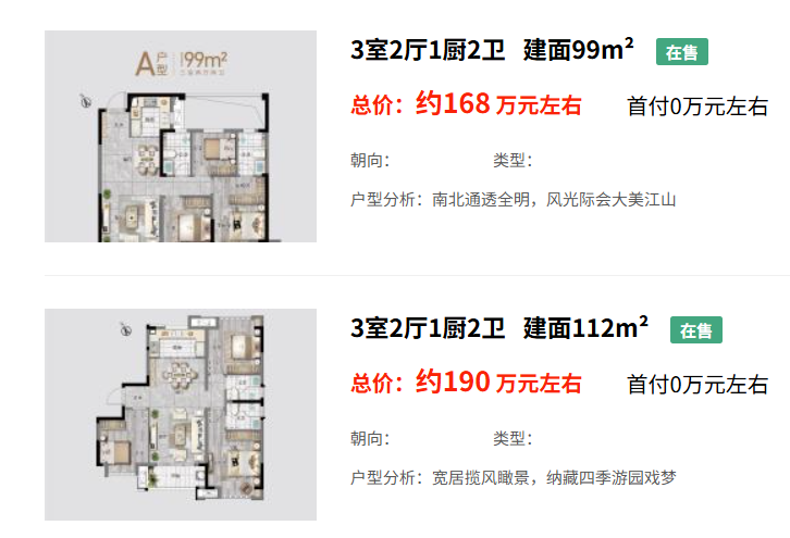 主力户型包括99㎡三房和135㎡四房,均采用全明设计,做到南北通透。