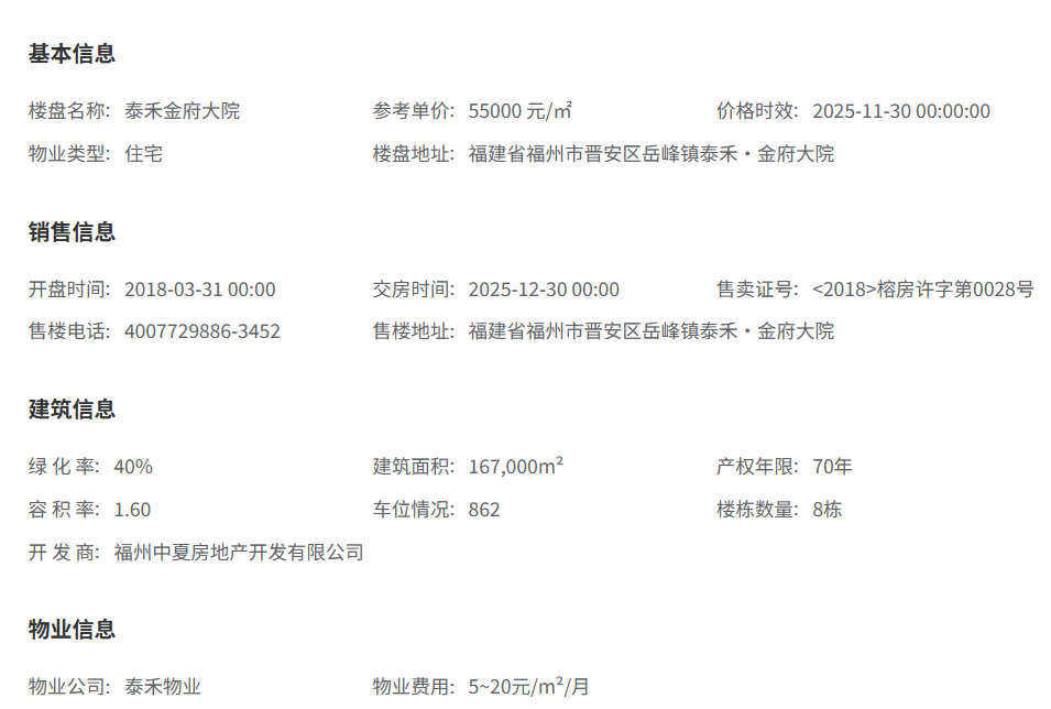 泰禾金府大院由福州泰禾房地产开发有限公司开发,该公司成立于2003年7月,是泰禾集团旗下专注于房地产开发的企业。公司在福州开发了多个知名项目,包括东二环泰禾广场等。