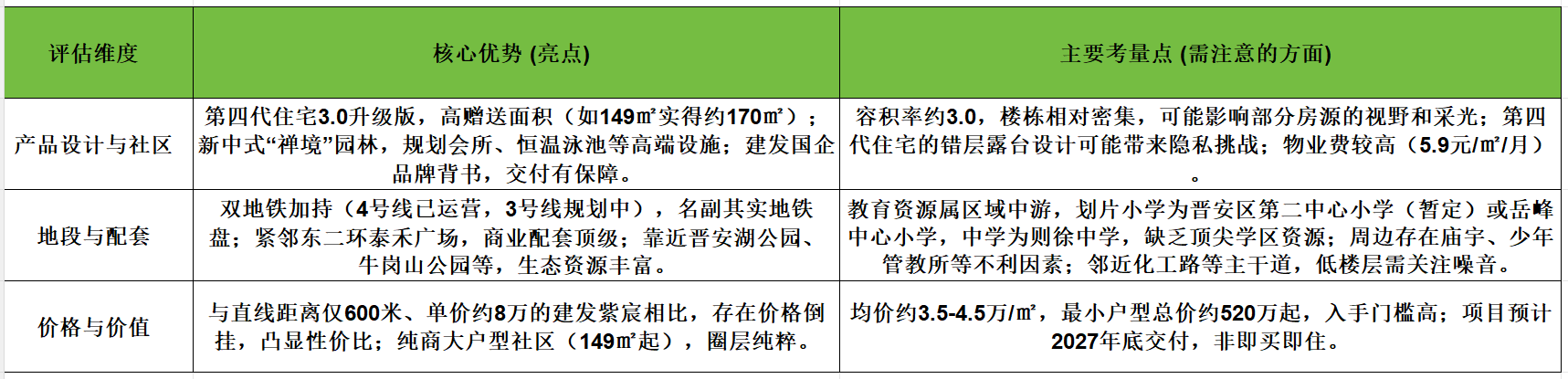 总的来说,建发灏云更像是一位优点和缺点都同样鲜明的“特长生”。它凭借建发的品牌魅力、第四代住宅的产品创新和东二环核心地段的成熟配套,为追求品质生活的改善家庭提供了一个颇具吸引力的选项。然而,其高昂的总价、平庸的学区以及存在的不利因素,也要求购房者必须具备相应的经济实力和清晰的取舍判断。最终的决定权在于您将哪些因素置于优先位置。如果它的核心优势正是您所看重的,并且能够接受其不足之处,那么建发灏云无疑是一个值得认真考虑的高端改善选择。