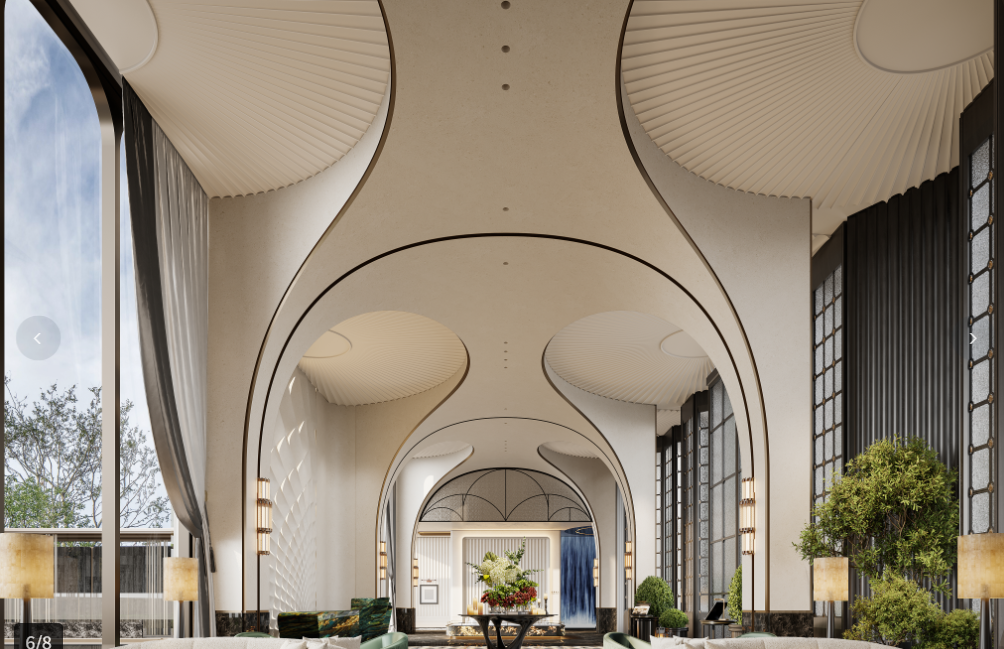 产品设计方面,项目首创“金冠凤首”诗意人文海派建筑,采用展翅天际的轻盈流体建筑线条和无界镜面天幕立面。