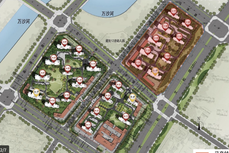 大东海新天地的产品线覆盖了从刚需到改善的各种需求,项目规划了A、B、C三个地块,共计25栋住宅楼,提供建面约64-141㎡的多样化户型。