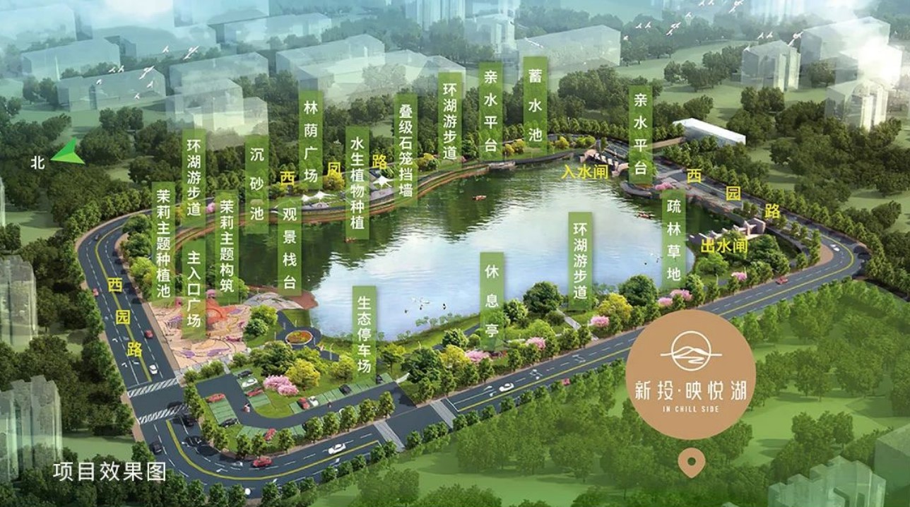 新投映悦湖:最大卖点是涧田湖公园,业主可享约6.6万㎡湖面、800米环湖步道和2.6万㎡绿地公园,实现“家门口的微度假”。社区内部也注重绿化,营造内外双园的居住体验 。