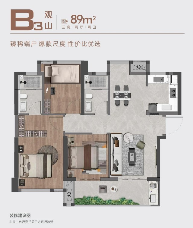 福厝远山拾里:户型设计灵活,注重高得房率和空间创新。如89㎡可改造为“3+1房”,134㎡户型拥有南向约14.4米大面宽和约53㎡的LDKB一体化空间,实用性高 。