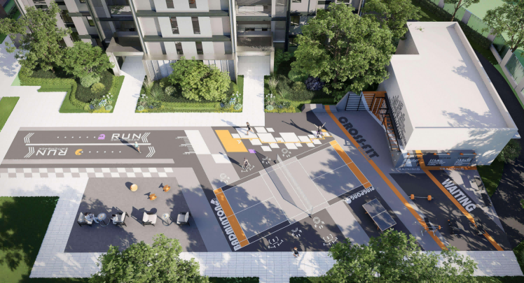 新投映南台的容积率控制在2.0以下,社区由8-10层的洋房和14-15层的小高层组成,总户数仅400余户。这种低密度规划确保了较低的居住密度,带来了更为静谧和舒适的居住体验。社区内还规划了约2000平米的中央花园,并设计了儿童乐园、运动跑道等全龄活动空间,旨在营造公园式的居住环境。