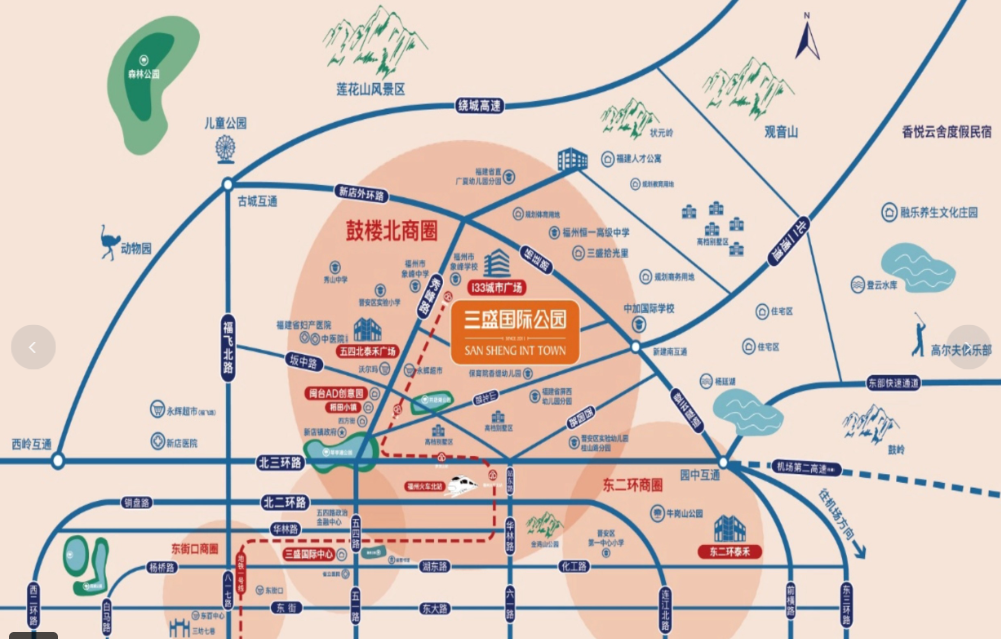 三盛香缇时光位于晋安区新店镇东园村69号,是三盛国际公园大社区的重要组成部分。项目总占地约1300亩,是一个集住宅、商业、教育和休闲于一体的大型综合社区。
