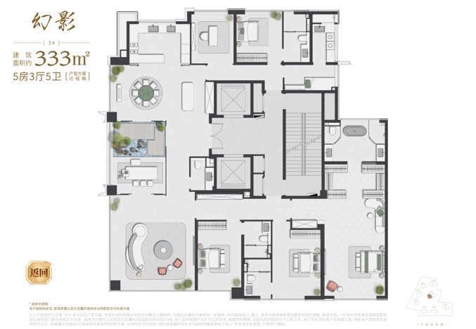 333㎡楼王户型:这是社区的巅峰之作,采用LDKG一体化(客厅、餐厅、厨房、花园一体化)设计,拥有超过55平方米的奢华主卧套房,居住舒适度达到极致。