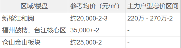 与福州市鼓楼、台江等核心区域动辄3.5万元/平方米以上的房价相比,以及仓山金山板块2.5万元/平方米左右的均价相比,江和阅20000元/平方米的价格具有一定的市场吸引力。