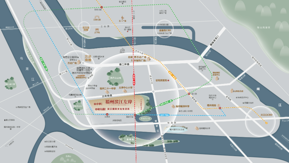 滨江左岸地处福州“东进南扩”的重要轴线——南二环沿线。随着区域持续开发,城市界面更新和配套完善是长期趋势,存在一定的区域升值潜力。