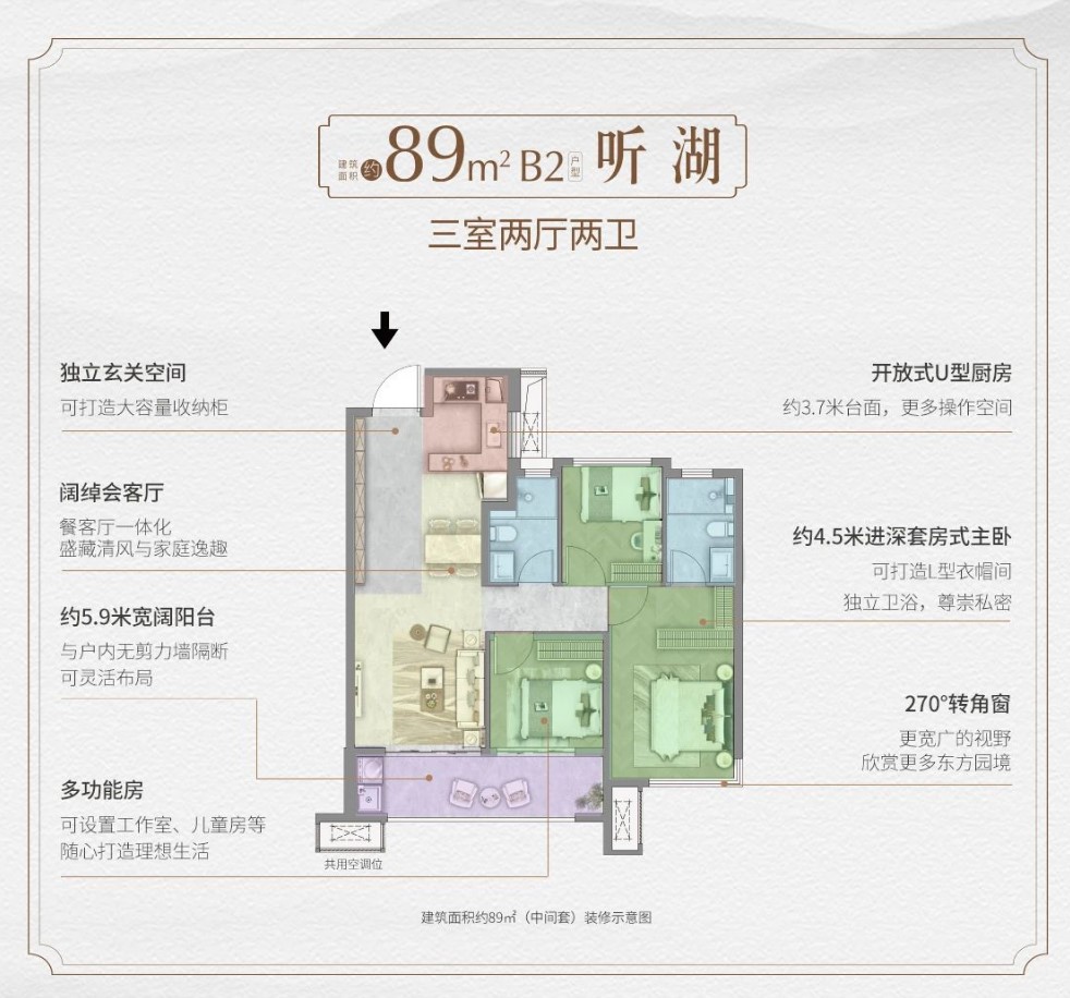 用心的产品设计:项目采用建发标志性的 “王府新中式”风格,打造了“一轴十四院”的园林景观和三进归家礼序,社区质感十足 。户型设计也颇具匠心,例如89㎡边套户型配备了市场上较大面积户型才有的双面宽阳台,部分主卧采用270°转角窗,极大提升了空间的采光和视野 。