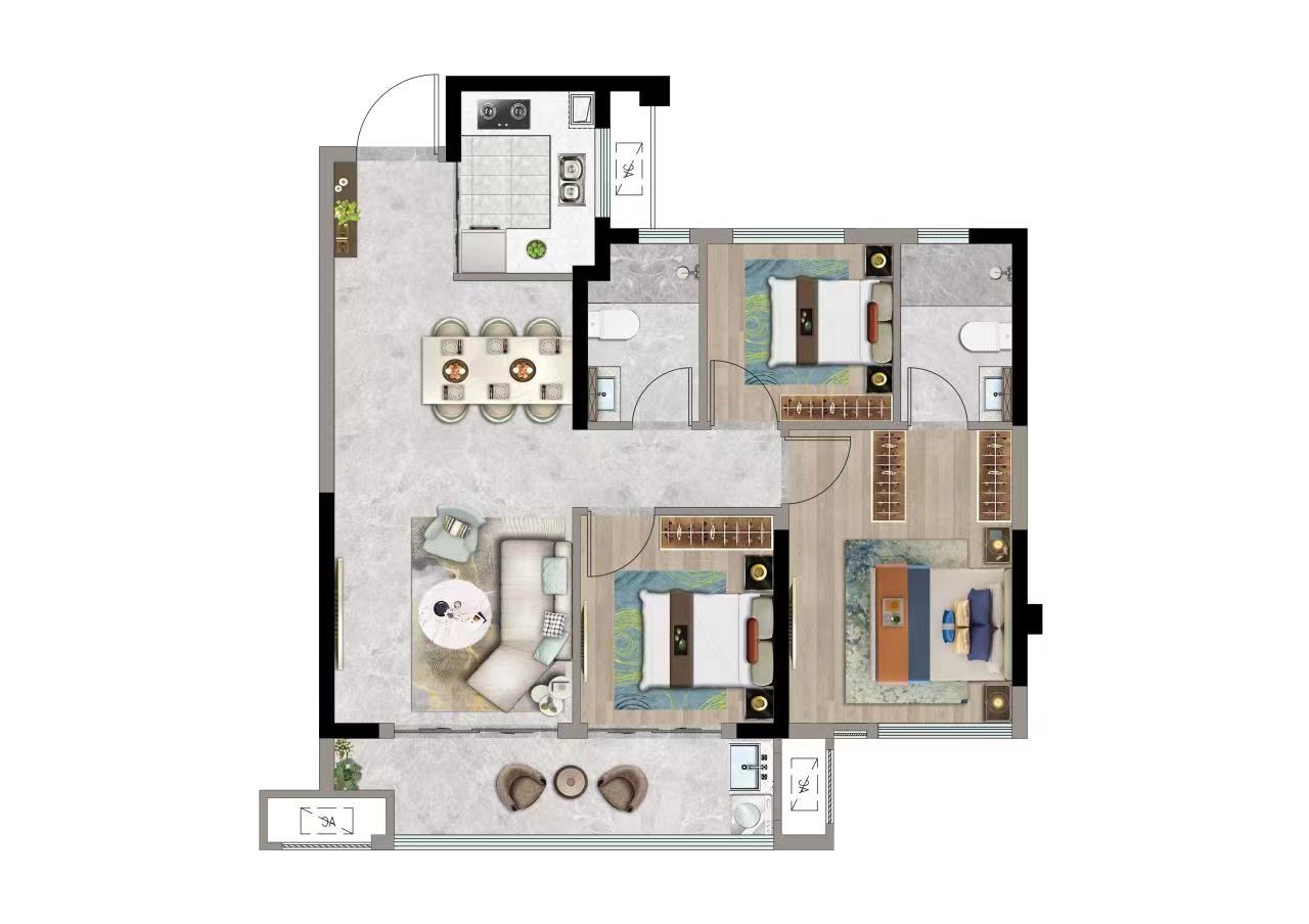 户型设计上,大东海玺悦走的是实用主义路线。89㎡三房户型精准狙击预算有限但急需功能三房的家庭,空间利用率高;119-129㎡四房则满足多孩家庭或需要独立空间的改善需求,尺度适中,总价可控 。多数户型采用南北通透设计,采光通风良好 。