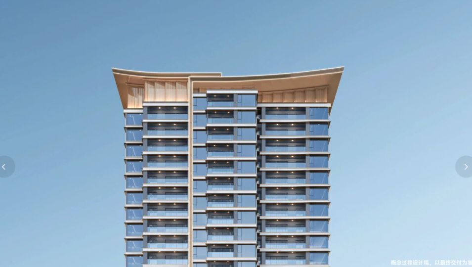 建筑设计方案融合了福州传统建筑文化元素,采用香槟金线条现代化演绎传统飞檐元素,体现了东方理想人居的理念。