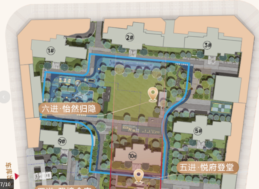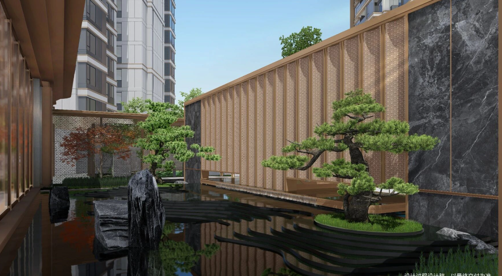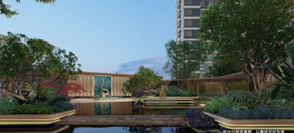 大门处设有水系景观,设计理念“风管人丁水管财”源自传统建筑文化对人与自然和谐共生的追求。