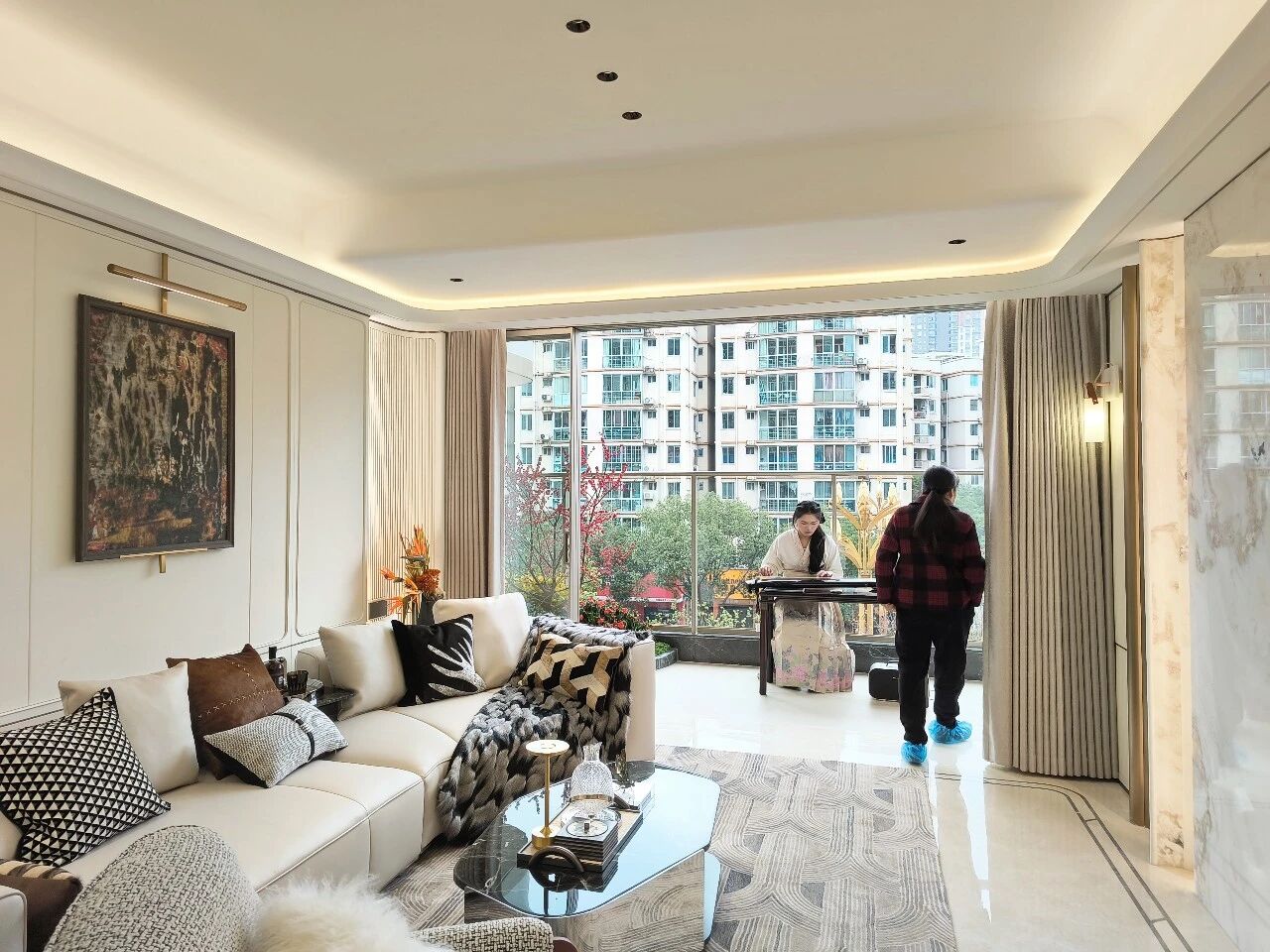 首先是户型的优化。项目采用1梯1户设计,配备独立电梯前厅,实现双动线入户,增强了居住的私密性和仪式感。其最大的亮点在于将传统的LDKBG(餐客厨花园阳台)升级为LDKGY(餐客厨花园庭院),实现了从“阳台”到“庭院”的质变。