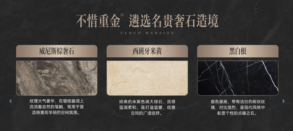入口选用威尼斯棕、西班牙米黄等名贵石材铺就,从第一步就开始营造归家的尊崇感。