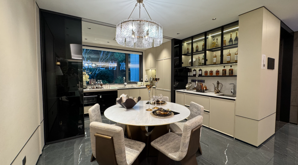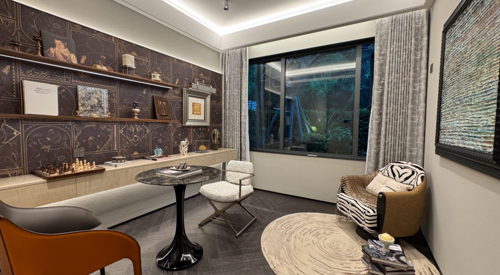 “金冠凤首”流线型立面配以鎏金天幕设计,灵感源自深圳南山香格里拉酒店的奢意美学。约460㎡的下沉式庭院与约1120㎡的高端会所,打造了一个星级度假式的生活空间。