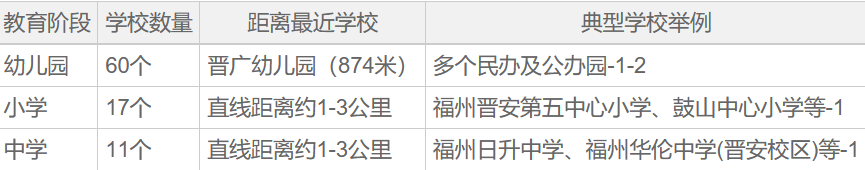 医疗资源同样丰富,直线3km范围内有17个一级及以上医院。其中福建省肿瘤医院距离1.4km,福建医科大学附属肿瘤医院距离1.5km,福建省儿童医院距离1.7km,为居民健康保驾护航。