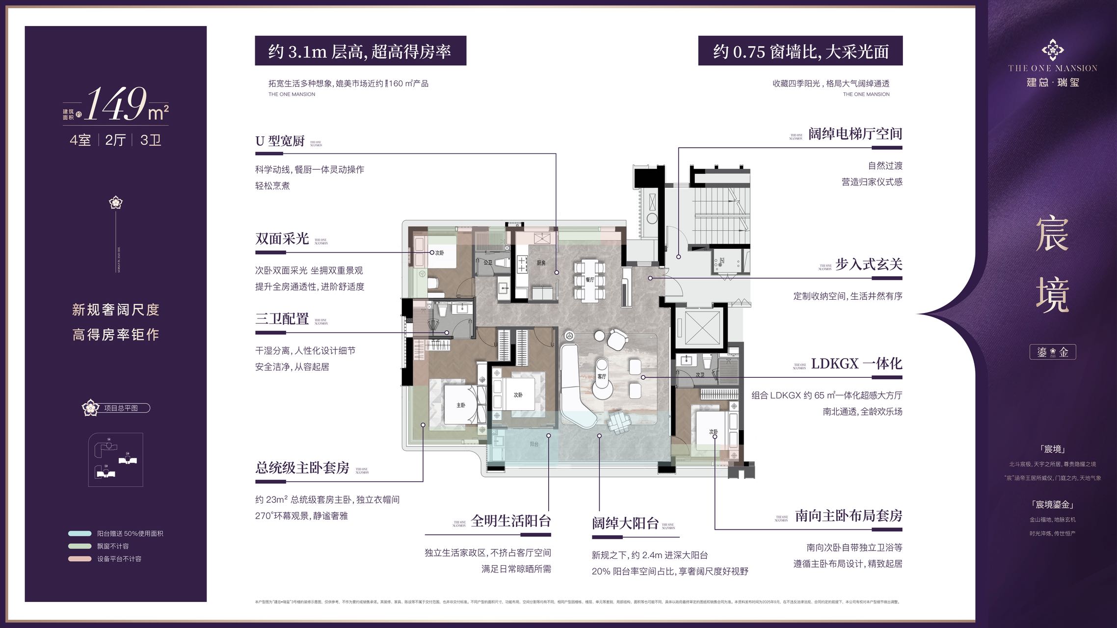 优先关注149㎡户型的高楼层房源,270°飘窗可最大化享受景观视野,采光通风更优。