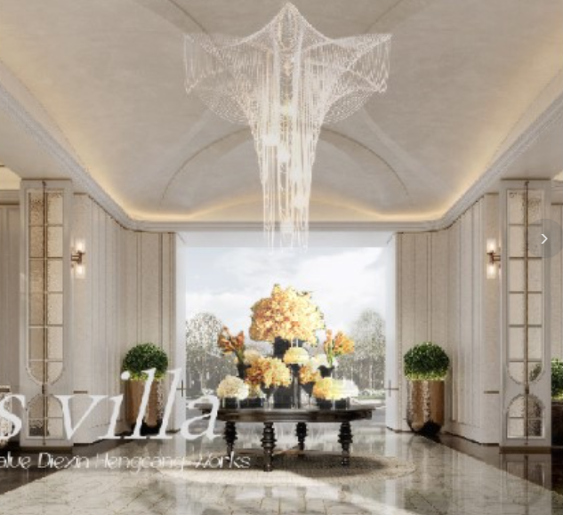 园林设计灵感来源于卢浮宫,以 “横三竖五”的经典构图,将法式宫廷的规则轴线与自然园林的浪漫气息融合。孟莎式屋顶、古典拱心石、对称式构图,都在向法式庄园的仪式感致敬