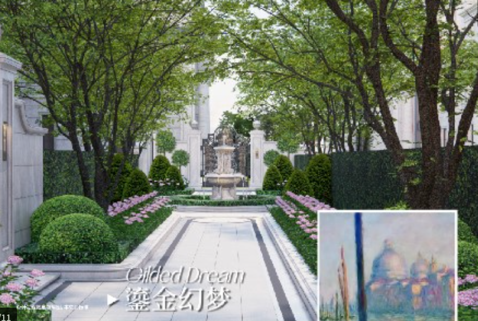 建总雍玺湾在建筑与园林设计上大量投入,展现了纯正的法式美学。