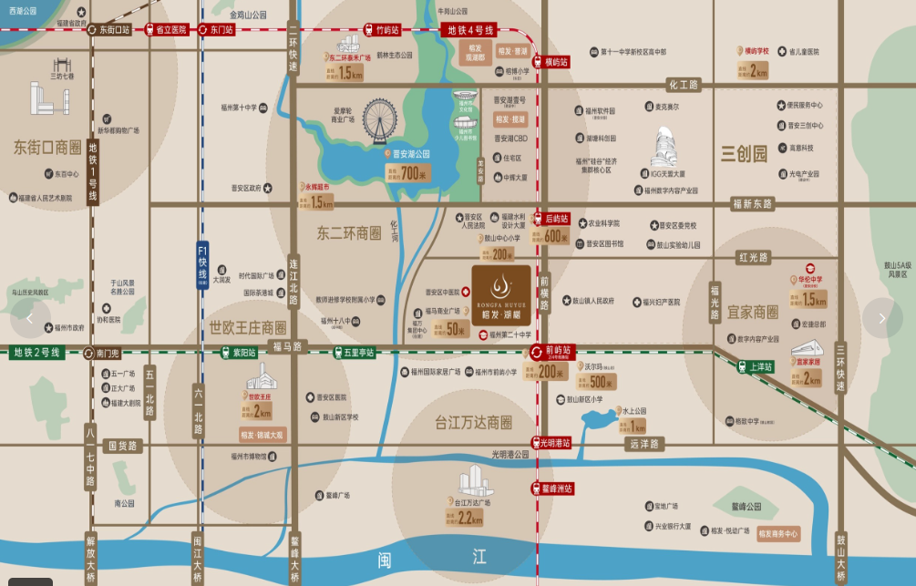 交通上,它具备真正的 “双轨地铁房”属性,距离已通车的地铁2号线与规划中的4号线交汇的前屿站仅约200-320米。经此出发,1站达宜家,2站至台江万达或世欧王庄,3站到东泰禾广场,4、5站即可抵达南门兜、东街口等城市核心,实现繁华与宁静的快速切换。