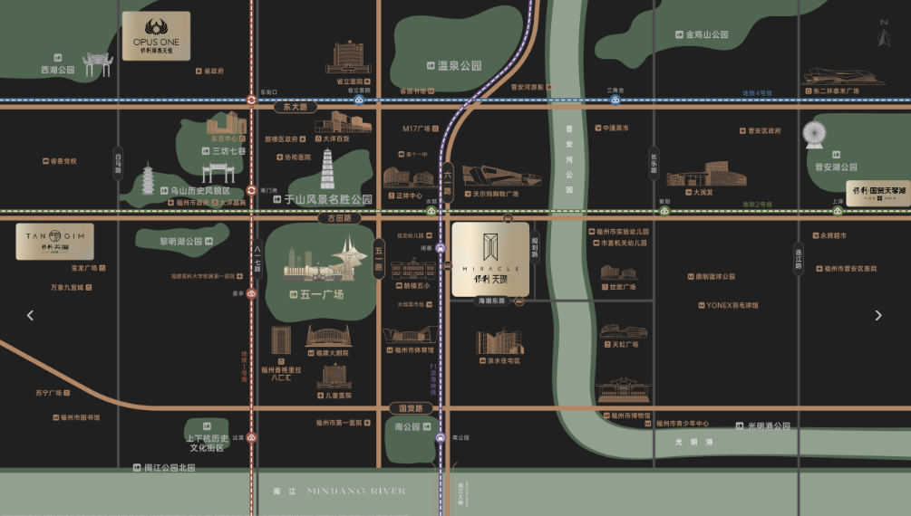 保利天瓒坐落于鼓楼区水部街道,六一中路与海潮东路交汇处,东侧一线临晋安河,占据福州行政、文化、商业及交通的枢纽地带。