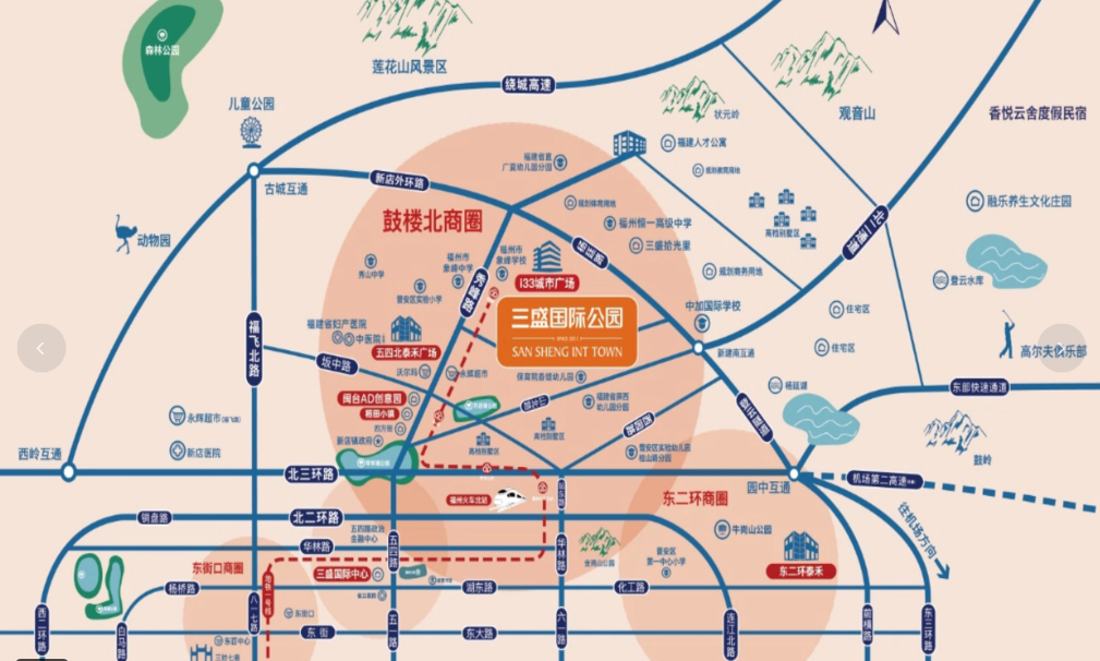 位于福州市晋安区五四北核心板块的三盛香缇时光,是总占地约1300亩的三盛国际公园大社区的重要组成部分。